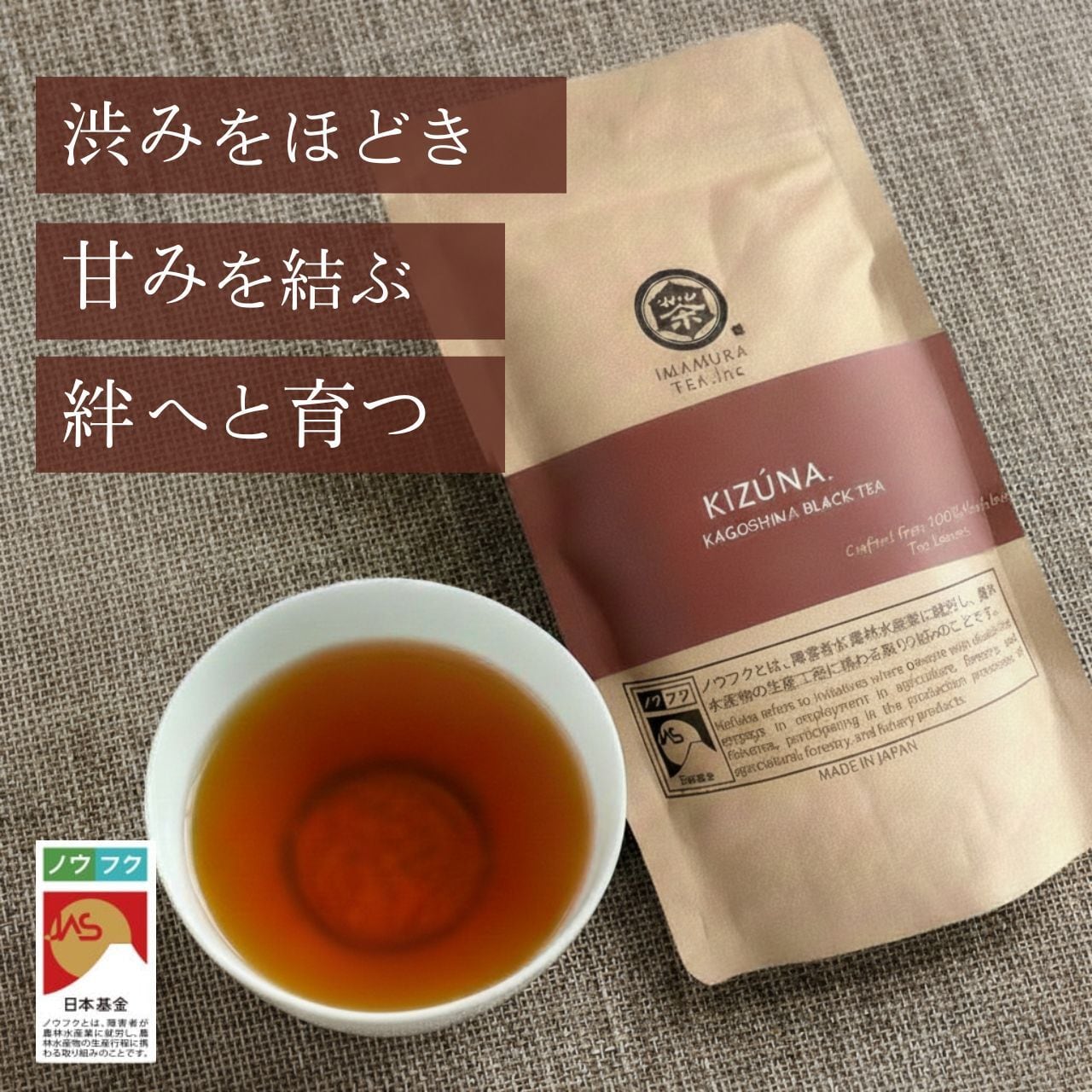 使用する茶葉は、すべて障がいのある仲間と共に育てた ノウフク茶葉100%。